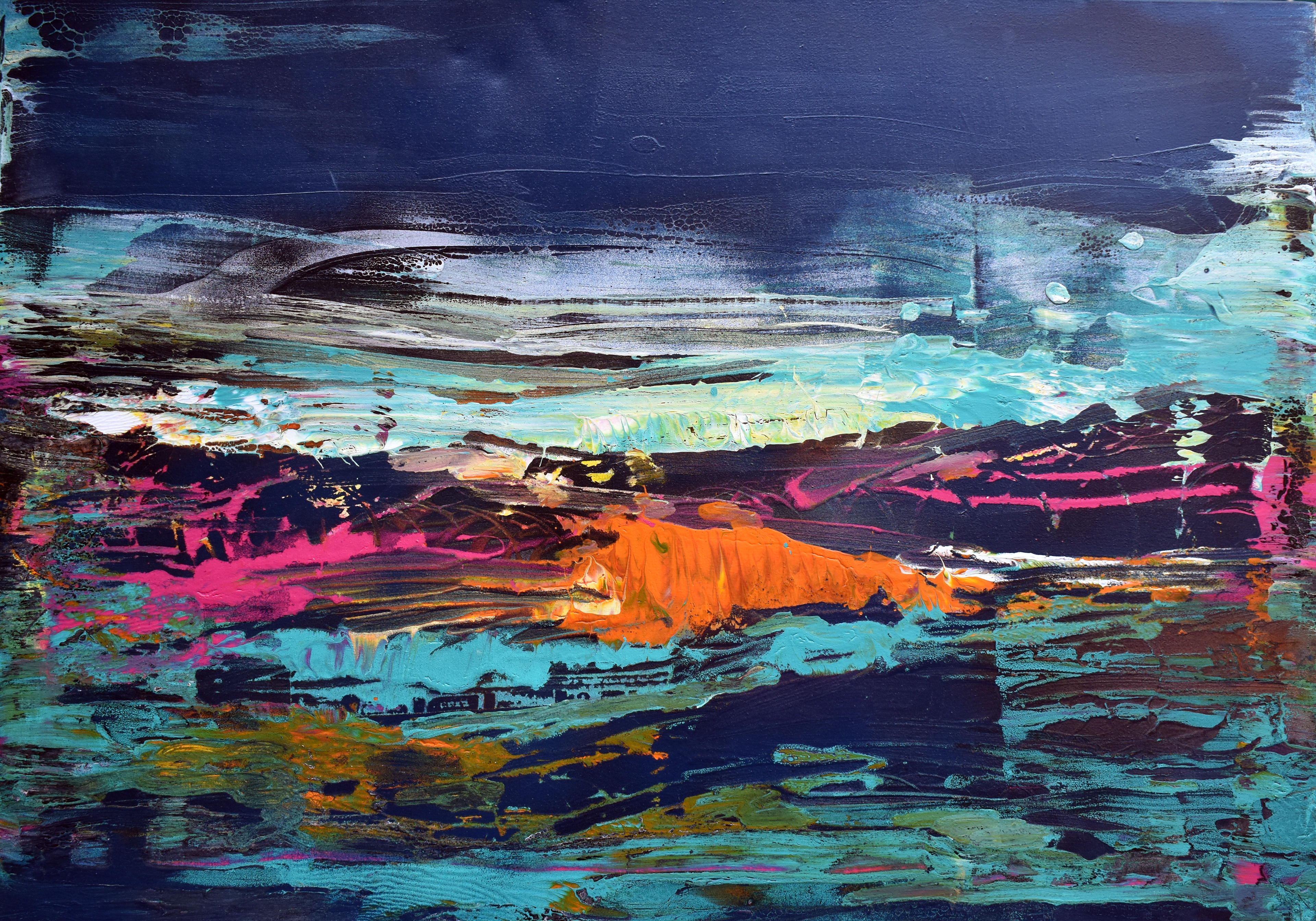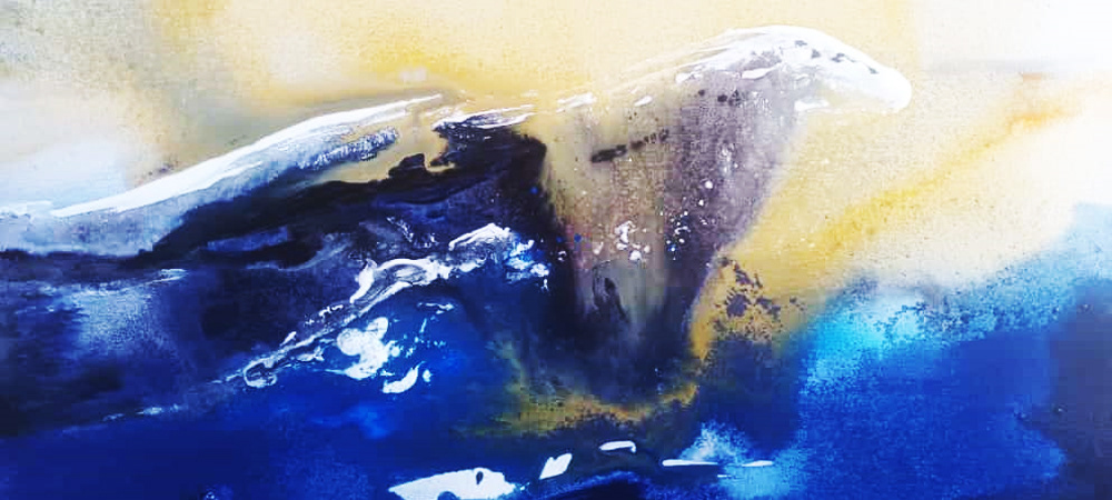 PAISAJE AZUL 80 X 100 CMS, ESMALTE Y ACRILICO. 2024