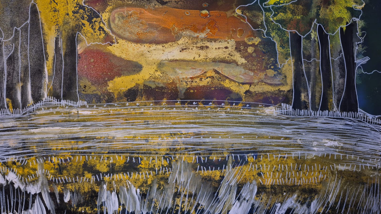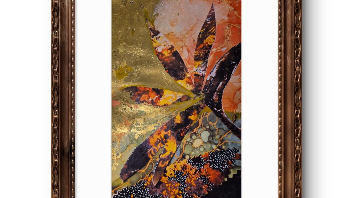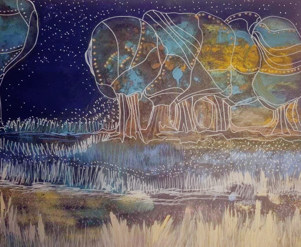 Flores solares en medio de la noche 150x 100 cms. 2025